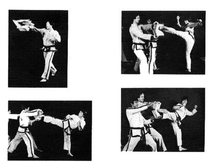 Sparring is the physical application of attack and defence techniques gained from pattern and fundamental exercise against an actual moving opponent or opponents under various situations.